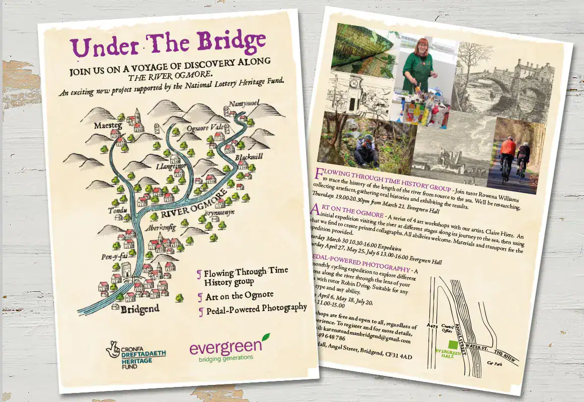We created the visuals for this exciting new project supported by the National Lottery Heritage Fund. A series of workshops tracing the history of the the river Ogmore from source to the sea. Volunteers will be researching, collecting artefacts, gathering oral histories and exhibiting the results.
